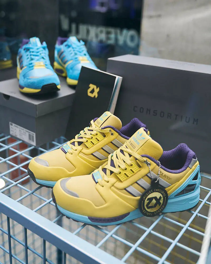 By the end of the day, the yellow adidas ZX 8000 JC & MT were completely sold out, as were the blue pairs, which later also sold online. For those who missed out on the yellow colorway, there was still a second chance: a raffle machine offered codes that allowed winners to purchase the shoes via the adidas Confirmed app and some were lucky enough to walk away with a win.