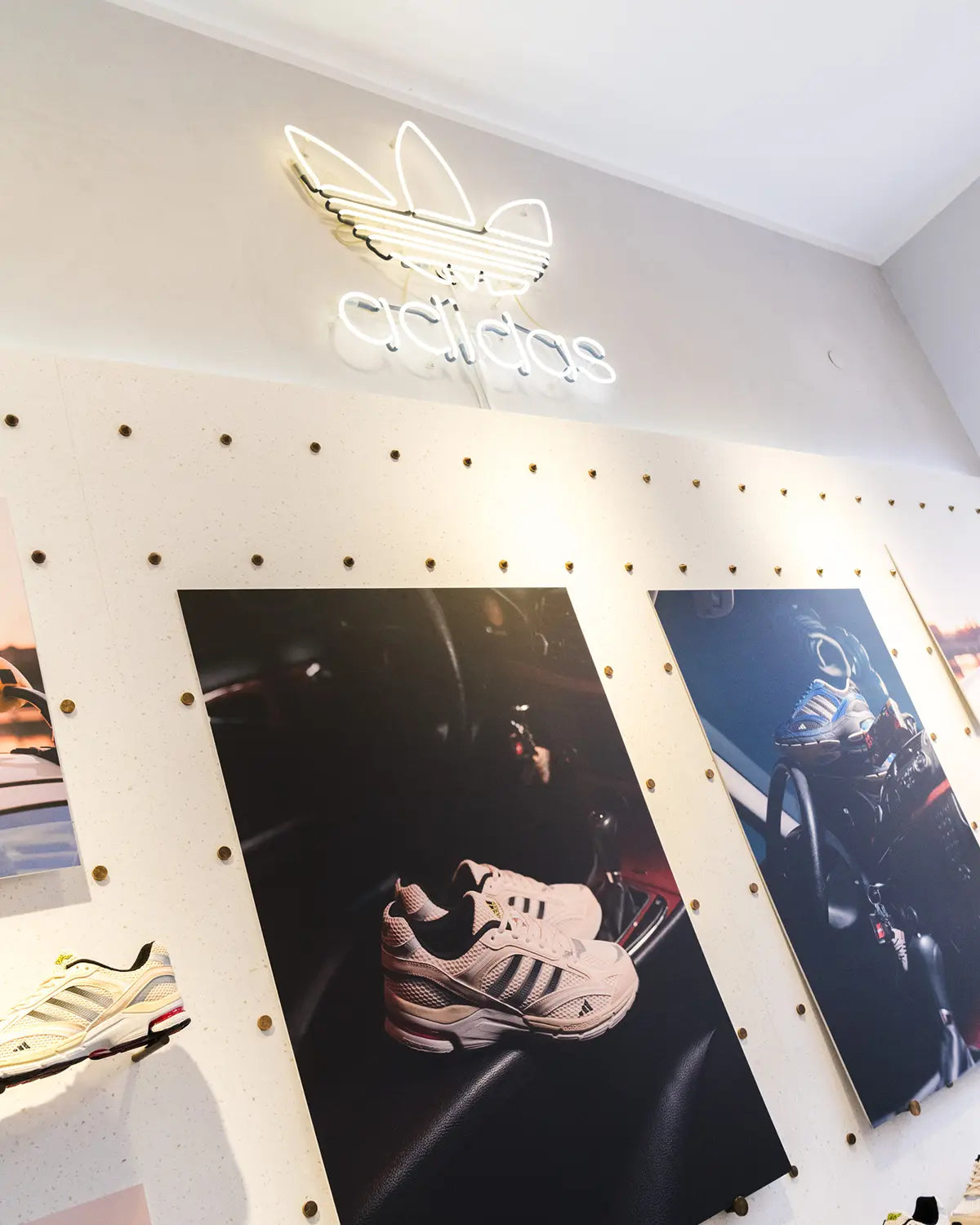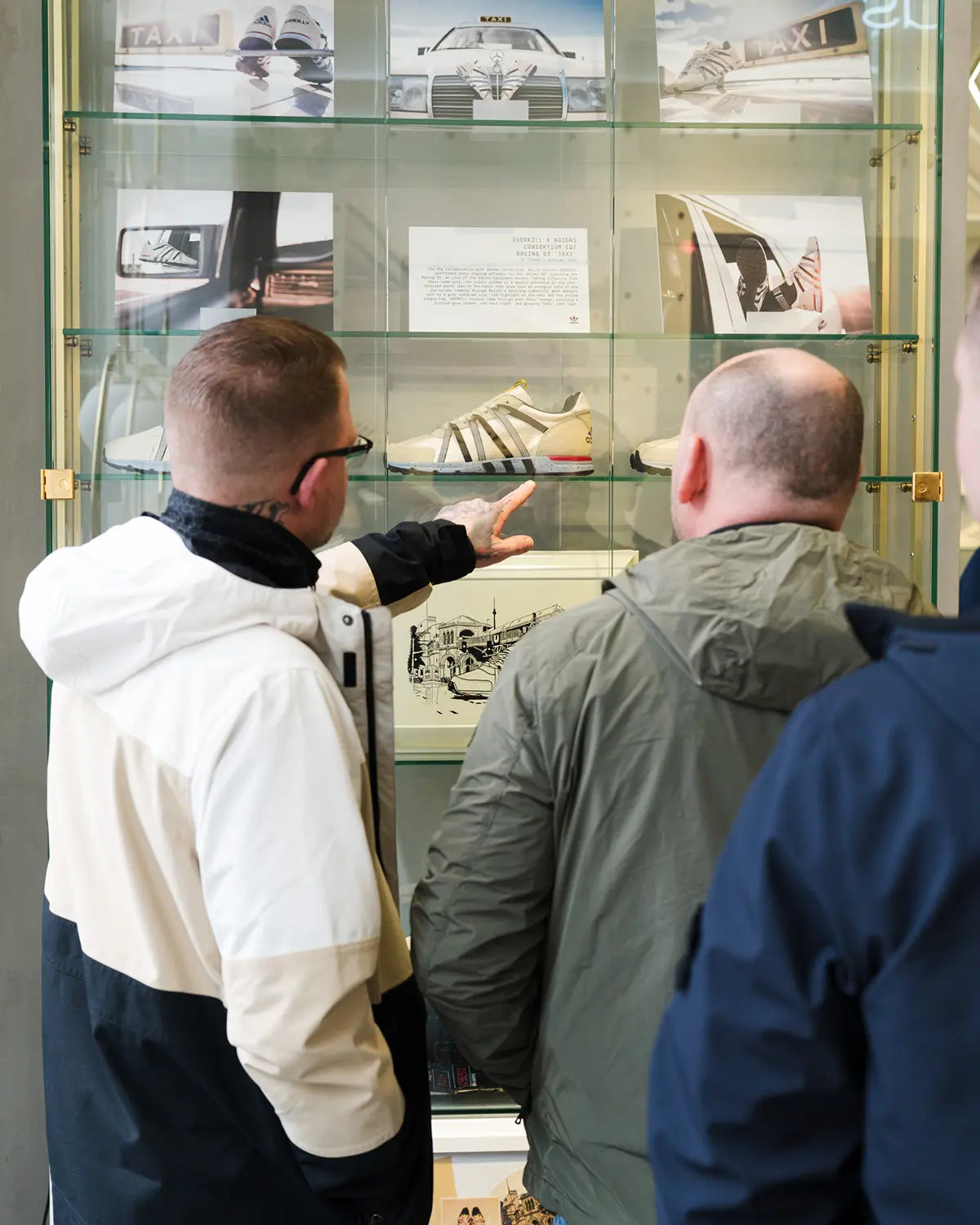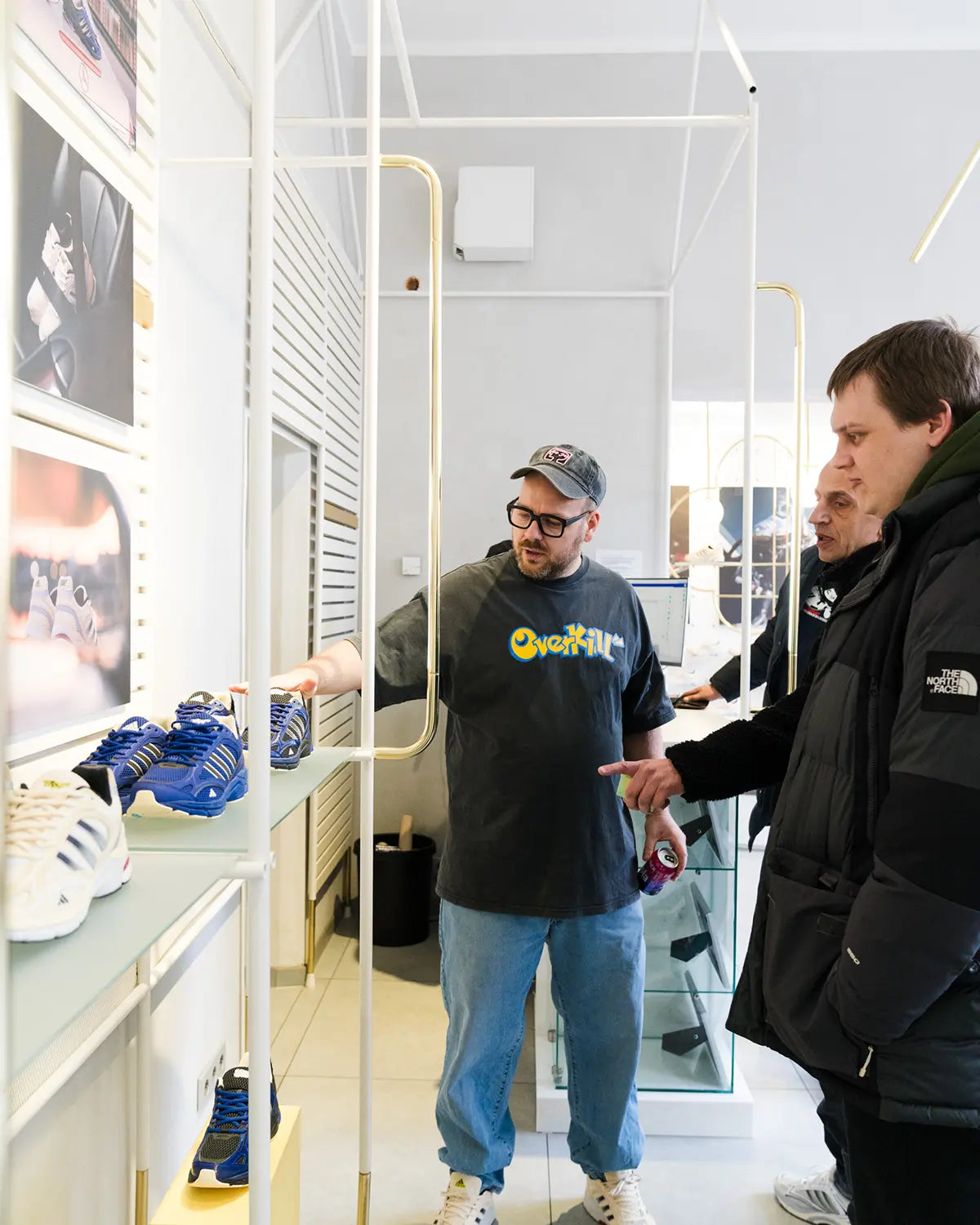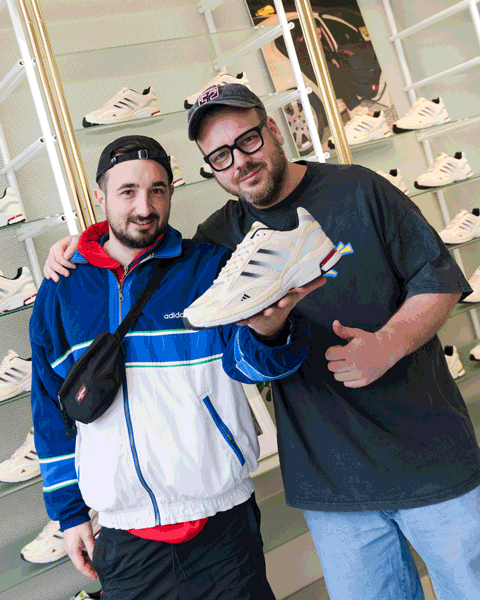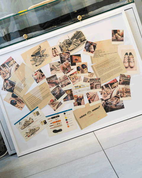 Large-scale prints from the campaign shoot defined the visual atmosphere of the space, perfectly capturing the aesthetic of the Spiritain 2000 Overkill. A special highlight was the display case, featuring the Overkill x adidas Equipment Racing 93 Taxi, complete with its special box and accompanying goodies — the very design foundation the Spiritain 2000 Overkill is built upon.