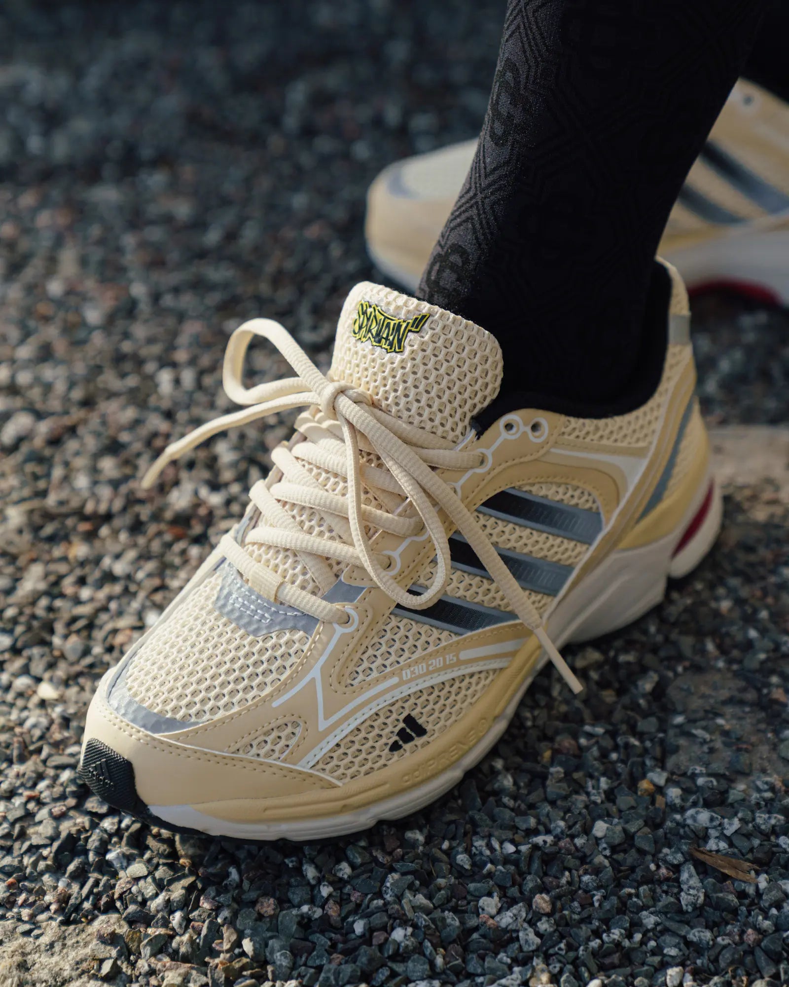 Der neue adidas Spiritain 2000 Overkill greift genau diese visuelle Identität auf und interpretiert sie auf einer modernen Running-Silhouette neu. Schwarze und cremeweiße Kontraste erinnern an die ikonischen Berliner Taxis und verbinden Retro-Inspiration mit einem zeitgemäßen Performance-Look. Dazu kommen - wie man es von uns kennt - einige Details wie reflektierende Elemente, der getaggte Modellname auf Ferse und Zunge, versteckte Hinweise auf den Release von 2015 und eine speziell gestaltete Innensohle.
