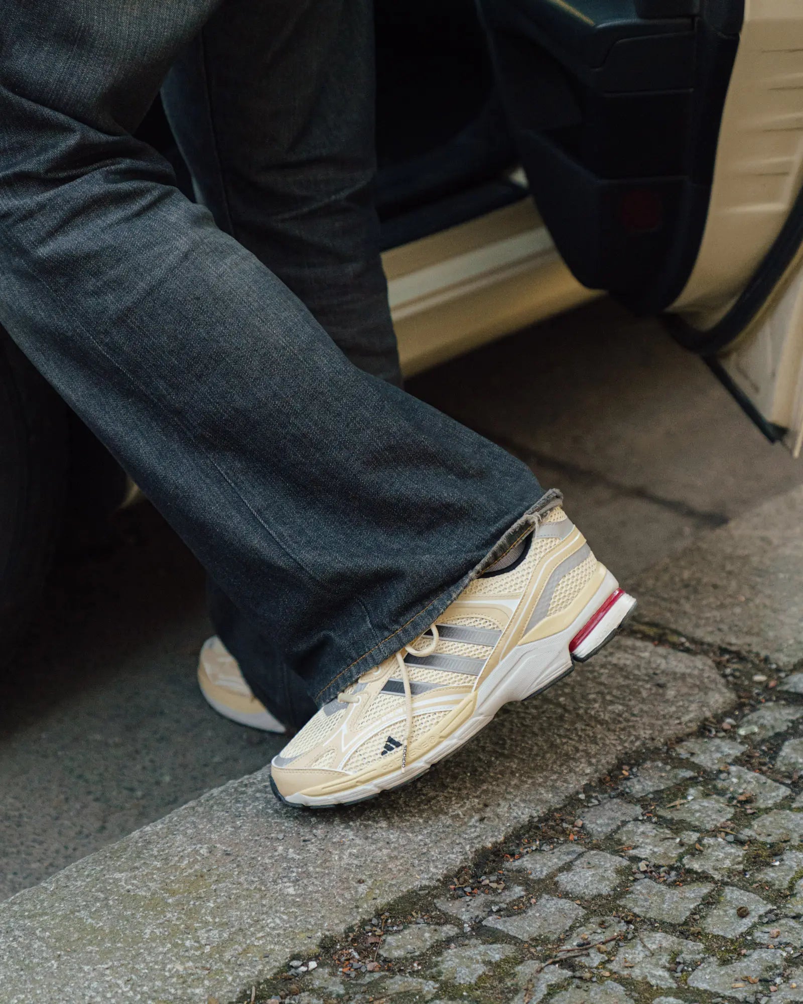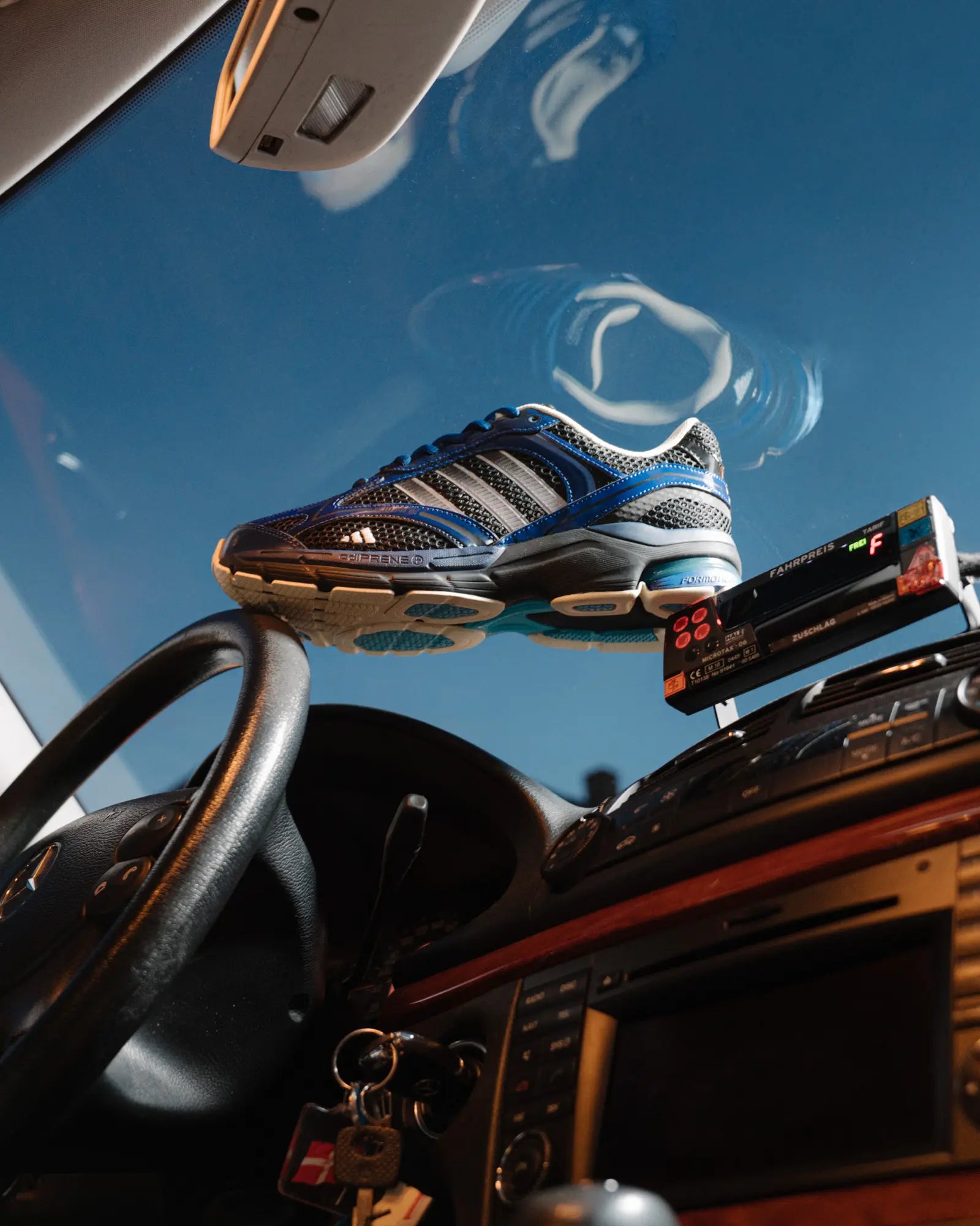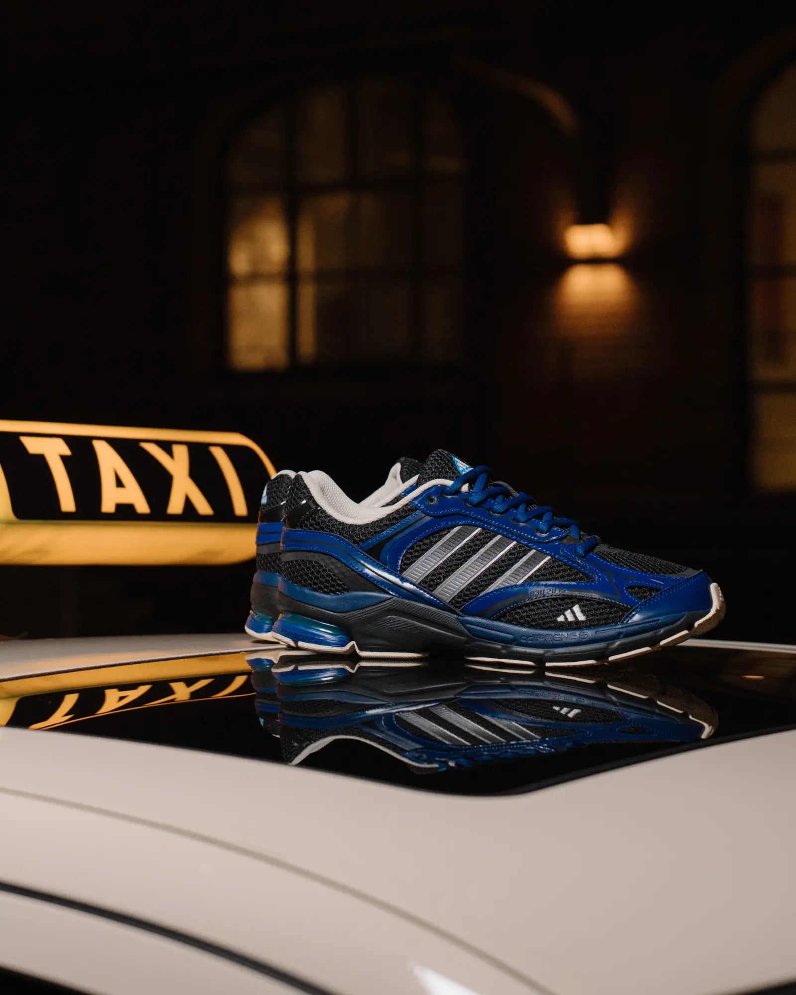 Der neue adidas Spiritain 2000 Overkill greift genau diese visuelle Identität auf und interpretiert sie auf einer modernen Running-Silhouette neu. Schwarze und cremeweiße Kontraste erinnern an die ikonischen Berliner Taxis und verbinden Retro-Inspiration mit einem zeitgemäßen Performance-Look.