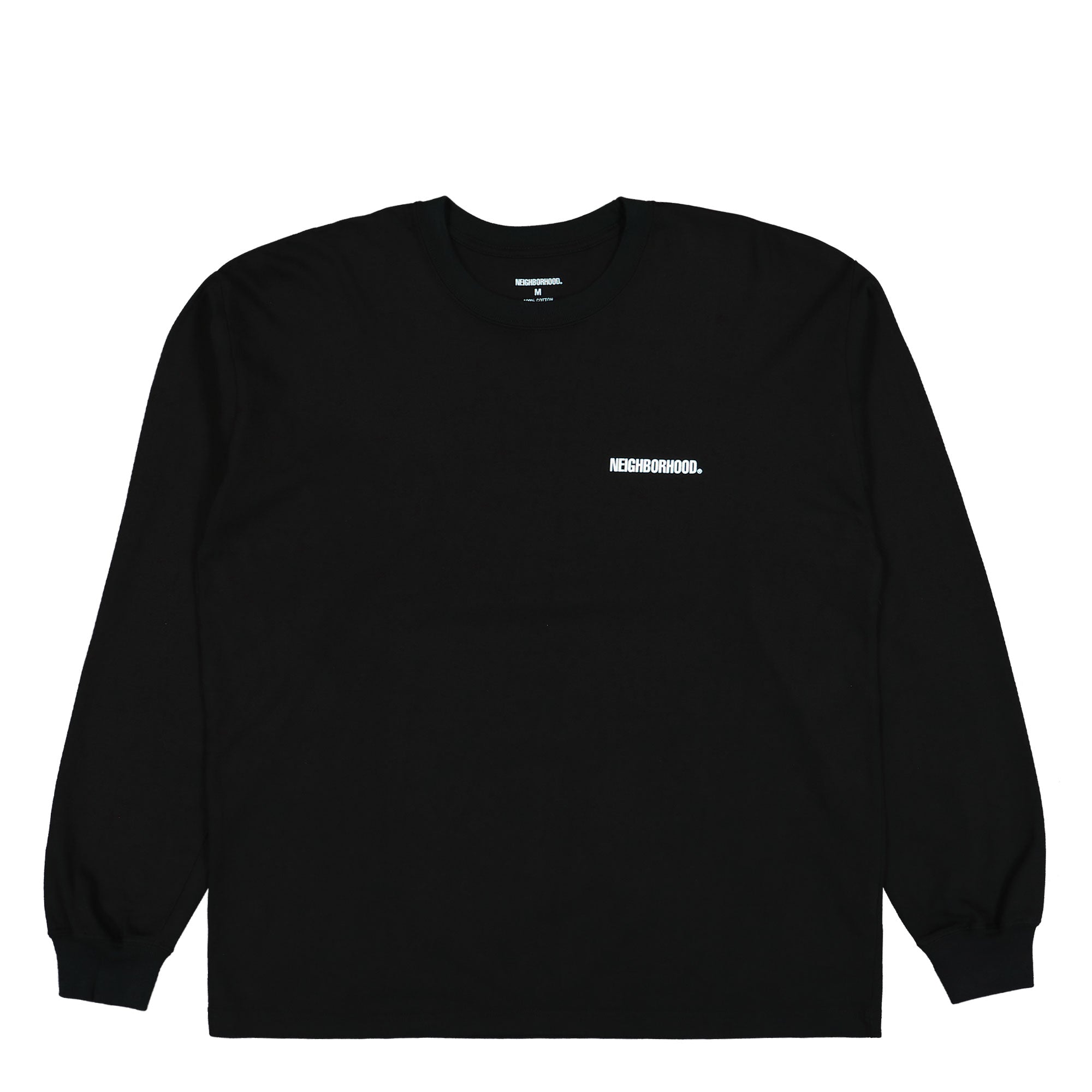 Das NH Tee LS-1 von Neighborhood bietet mit seinem schwarzen Baumwollstoff und dem Rundhalsausschnitt einen stilvollen und bequemen Look. Die elastischen Bündchen sorgen für eine bessere Passform, und das Branding auf der Rückseite verleiht ihm einen einzigartigen Touch. Fachmännisch hergestellt für die perfekte Mischung aus Mode und Funktion.