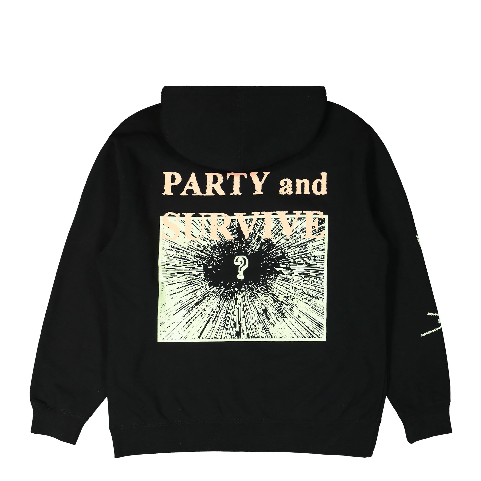 Mit dem Pullover Hood bist du stilvoll und gut vorbereitet. Der in Zusammenarbeit mit Party & Survive und Obey entworfene Kapuzenpullover verfügt über einzigartige grafische Prints auf der Vorder- und Rückseite sowie auf dem Ärmel, die im Dunkeln leuchten. Perfekt für Musikliebhaber dieses Genres, ist dieser schwarze Hoodie das ultimative Statement-Piece.