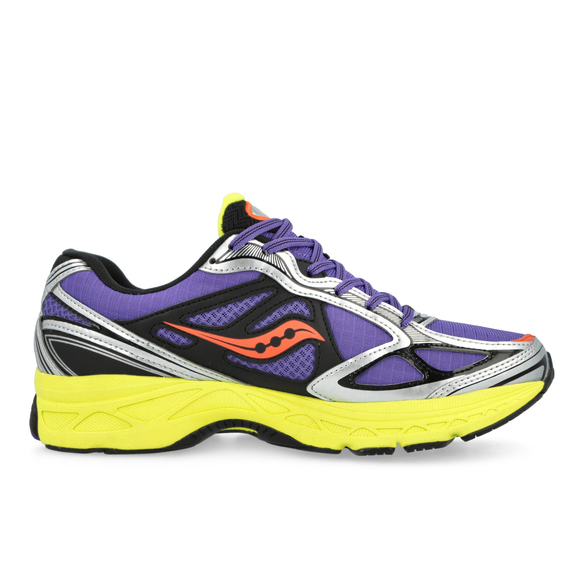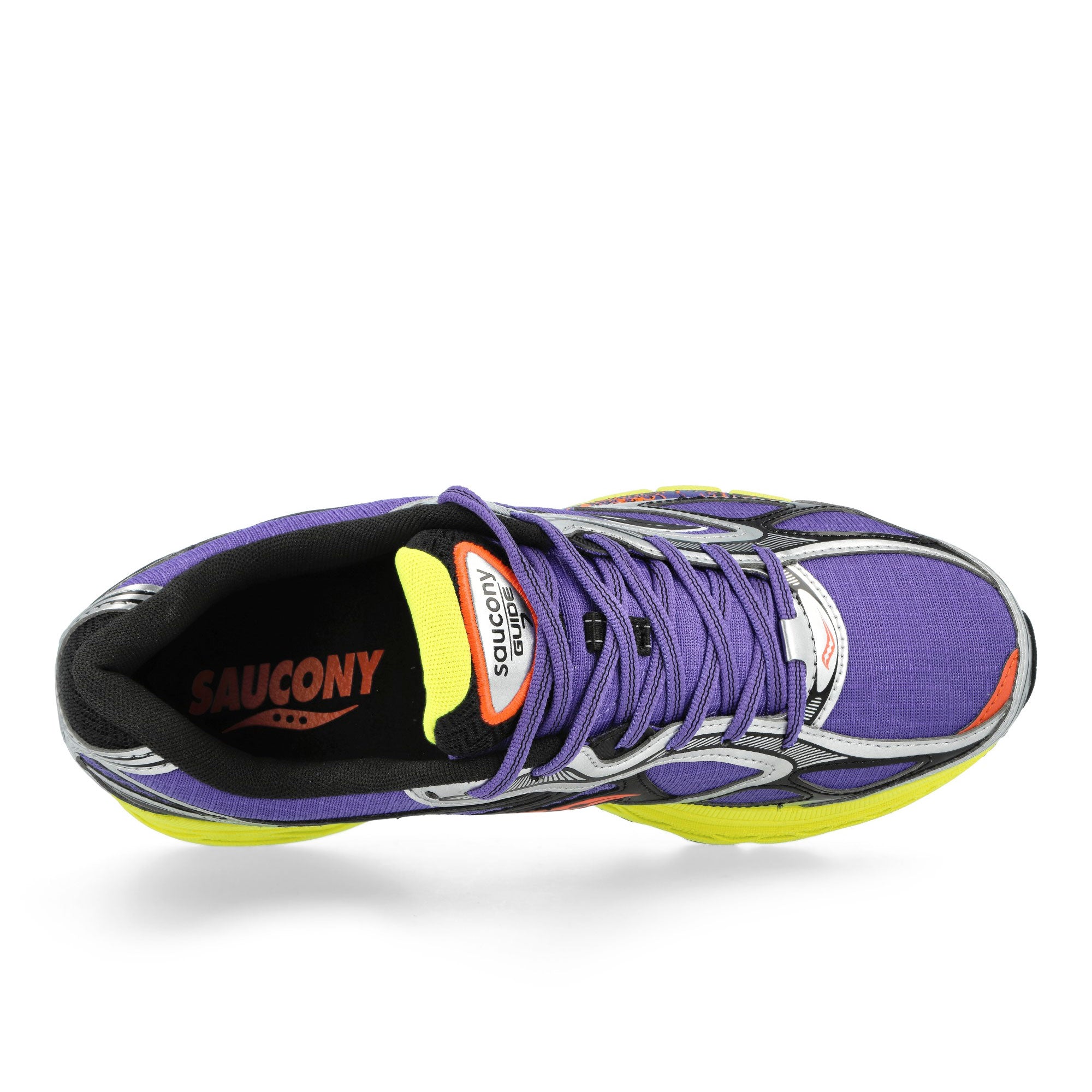 Der Saucony ProGrid Guide 7 in der kontraststarken Farbkombination Purple / Citron vereint eine technisch anspruchsvolle Konstruktion mit einer ausdrucksstarken Optik für höchste Performance-Ansprüche. Das Obermaterial besteht aus einem besonders widerstandsfähigen Ripstop-Gewebe, das durch seine Reißfestigkeit eine lange Lebensdauer garantiert und gleichzeitig eine dynamische Struktur aufweist. Farblich dominiert ein tiefes, sattes Violett die Basis des Schuhs, während leuchtende Akzente in Citron-Gelb für eine markante visuelle Energie an der Sohle sowie im Bereich der Zunge sorgen. Strategisch platzierte, gummierte Overlays verstärken die Seitenwände und bieten eine hervorragende Stabilität sowie Schutz gegen äußere Einflüsse bei jedem Schritt. Ein funktionales Highlight stellt die bewährte Grid-Technologie dar, welche die beim Aufprall entstehenden Kräfte gleichmäßig über die gesamte Sohlenfläche verteilt und so eine außergewöhnliche Dämpfung sowie eine kontrollierte Fußführung ermöglicht. Die Kombination aus atmungsaktiven Materialien und stützenden Synthetik-Elementen sorgt für ein optimales Fußklima und ein sicheres Tragegefühl auf unterschiedlichen Untergründen. Durch das Zusammenspiel der komplementären Farben und der technologischen Innovationen präsentiert sich dieser Schuh als leistungsstarker Begleiter, der Funktionalität und ein progressives Design ohne Kompromisse miteinander verknüpft und bei jeder sportlichen Aktivität eine souveräne Figur macht.