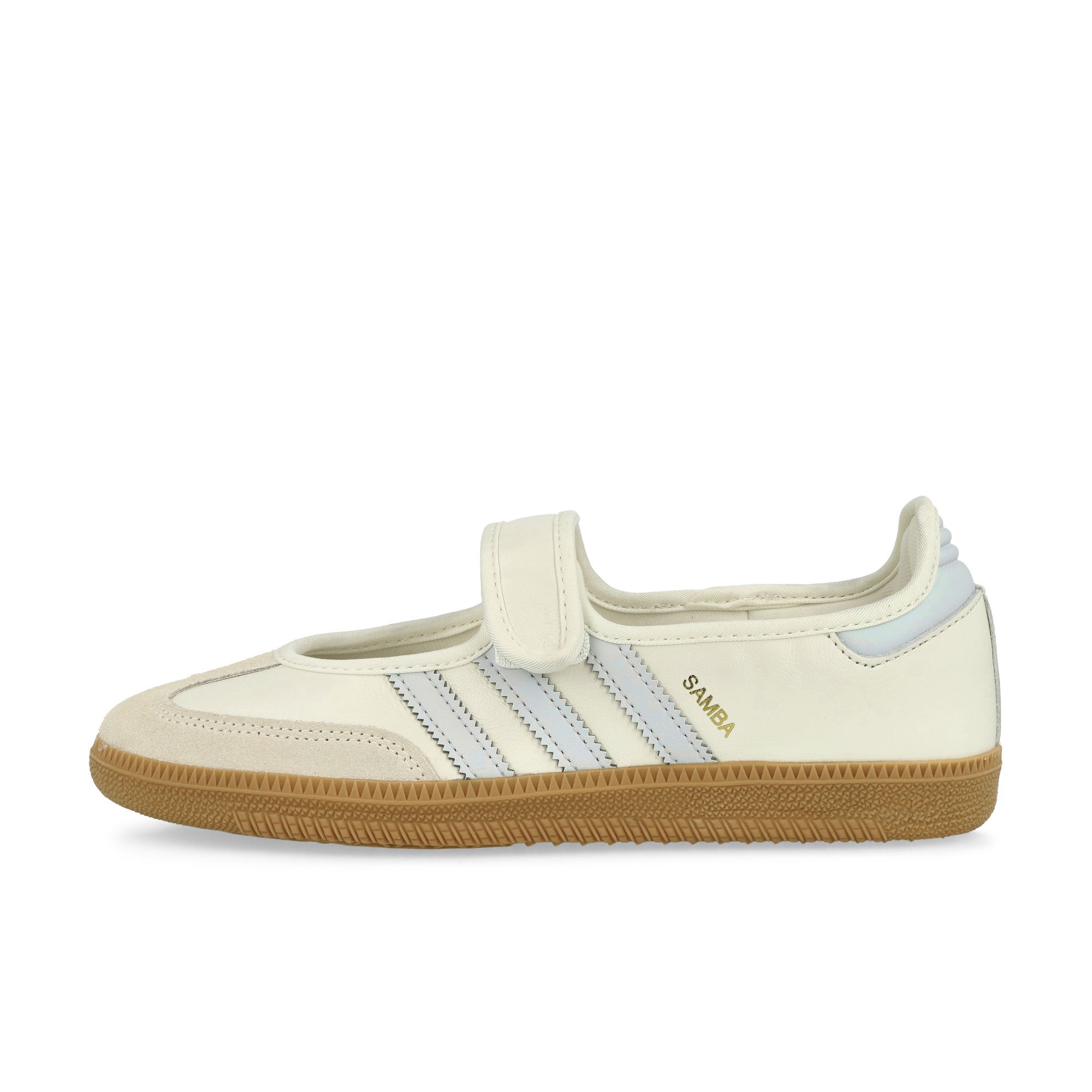 The iconic classic appears in a new, feminine design: the adidas Samba Jane W blends nostalgic charm with modern elegance. The sleek silhouette is reinterpreted through the timeless Mary Jane style, adding refined sophistication to the retro sneaker. Premium smooth leather creates a polished appearance, while the serrated 3-Stripes and classic branding reference the shoe's athletic heritage. Inside, the model features a soft satin lining that ensures a smooth wearing experience. The gum rubber outsole in typical Samba fashion delivers optimal grip and reinforces the shoe’s authentic character. Whether as a stylish upgrade for everyday wear or a subtle highlight in urban outfits, this model offers versatile options for fashion-conscious individuals. With its combination of tradition, comfort, and contemporary design, this shoe captures the spirit of the times and easily integrates into modern looks. The adidas Samba Jane W channels the vibe of past decades and transforms it into a stylish yet comfortable design that impresses every season. A harmonious fusion of athletic DNA and fashion-forward finesse, this take on the Samba series refreshes and carries forward its cult status.