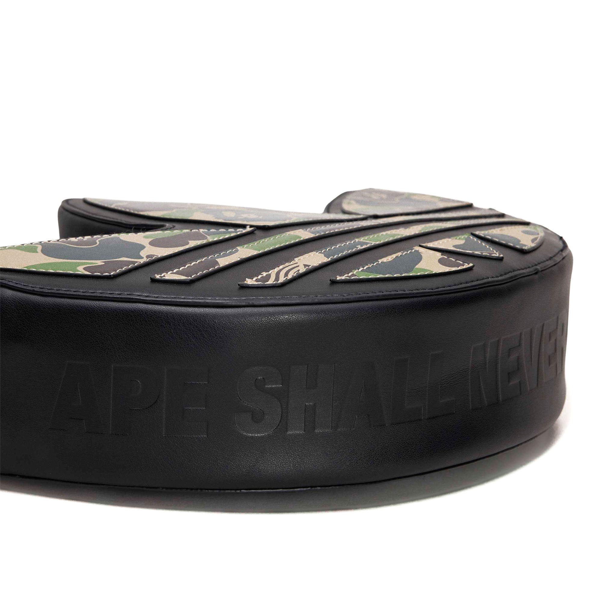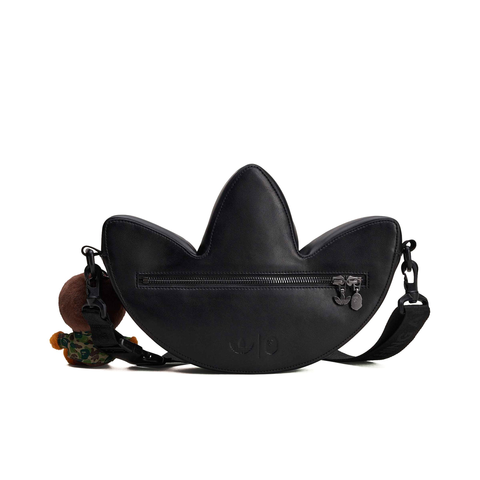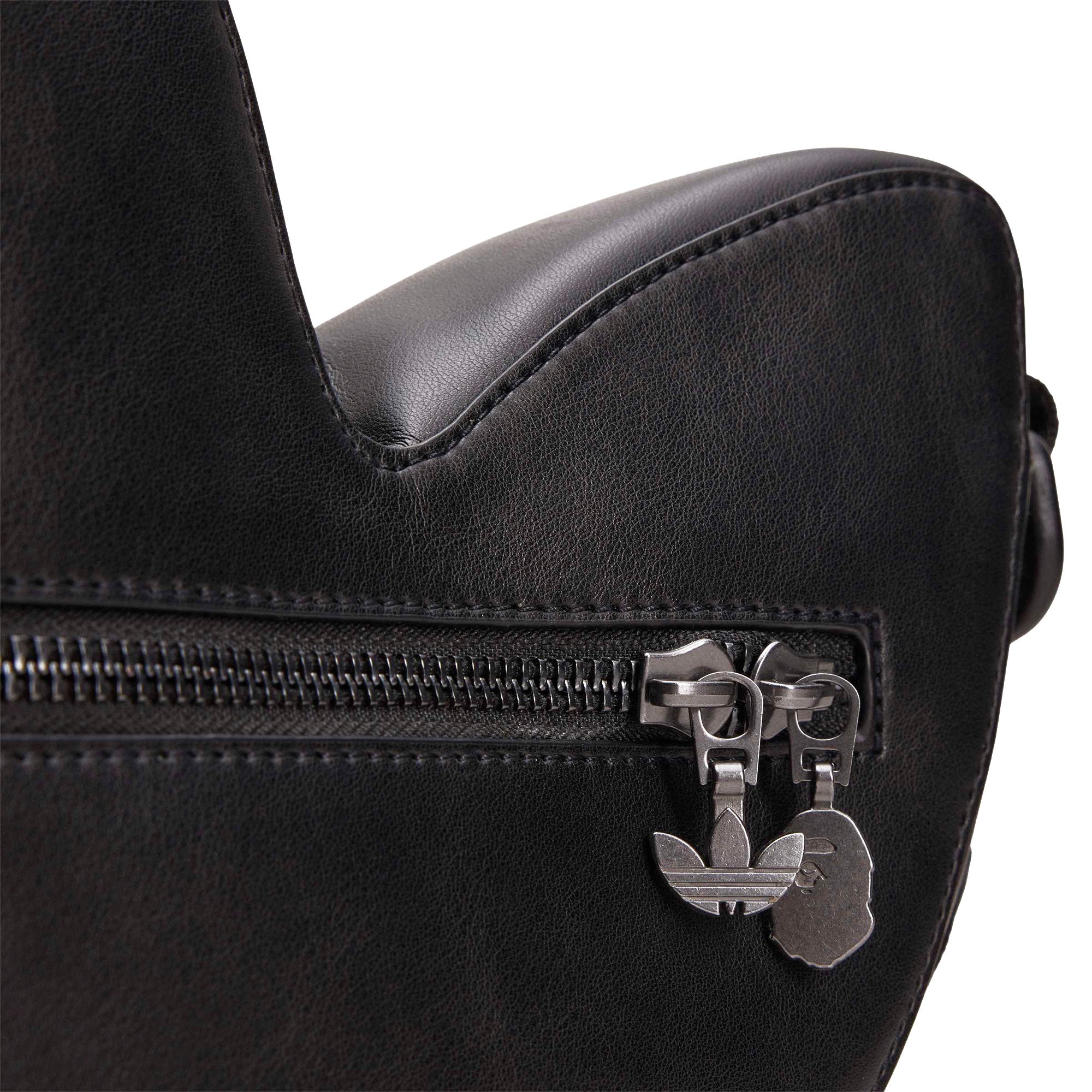 The BAPE x adidas Trefoil Shoulder Bag ( KF4921 ) brings together the distinctive design language of two iconic brands in a compact shoulder bag that balances strong visual identity with everyday functionality. Its deep black colorway appears deliberately clean and is enhanced by matte and subtly textured surfaces made from premium synthetic leather, adding depth and a refined contrast to the overall look. Subtle glossy accents meet clear lines, while the iconic adidas Trefoil logo and the characteristic BAPE signature highlight the design without appearing overpowering. Thanks to its practical size, this shoulder bag is ideal for urban days, travel or events and offers enough space for a smartphone, wallet and other essentials. The adjustable shoulder strap ensures flexible wearing comfort, while the durable construction promises long-lasting use. As the result of a creative collaboration, this BAPE x adidas bag represents individuality, timeless aesthetics and a confident style that seamlessly combines function and design.