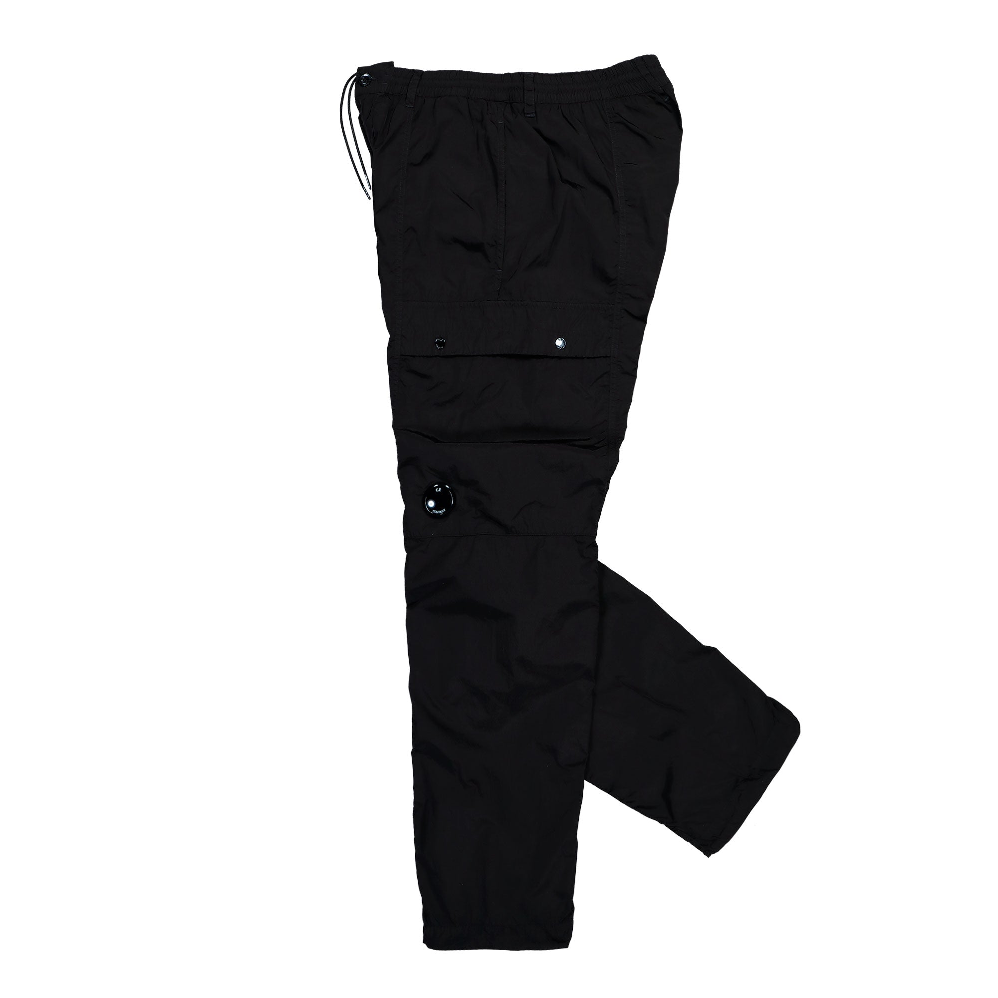 The C.P. Company Chrome-R Regular Cargo Lens Pants ( 20CMPA032A-005904G 999 ) mark a pinnacle in the evolution of functional sportswear through the use of innovative recycled materials. Finished in a deep, rich Black, the pants impress with an extraordinary depth of color, which gains a slightly glossy, technical texture from the special Chrome-R fabric – a multifilament nylon. This black colorway appears particularly intense and remains extremely durable even under heavy use thanks to the garment-dyeing process. The C.P. Company Chrome-R Regular Cargo Lens Pants ( 20CMPA032A-005904G 999 ) offer reliable protection against the elements due to their water-repellent and windproof properties, while the material remains lightweight and breathable. A distinctive feature is the ergonomically placed cargo pocket on the left leg, which is equipped with the iconic lens detail and embodies the brand's technical DNA. The regular cut ensures a contemporary silhouette, guaranteed by the elastic waistband and precisely crafted leg openings for a perfect fit. Multiple pocket solutions provide functional storage for essentials, making the pants a versatile companion in urban environments. Those who appreciate textile innovation and a clean, masculine aesthetic will find this a durable model that combines supreme craftsmanship with state-of-the-art material research.
