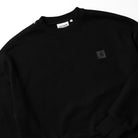 The W Eldon Sweat is a black sweatshirt designed by Carhartt WIP. Crafted with cotton, it boasts a boxy and loose fit, paired with cuffed hems for a comfortable and stylish look. Its metal rivets on the shoulders add a touch of edge to this classic piece.