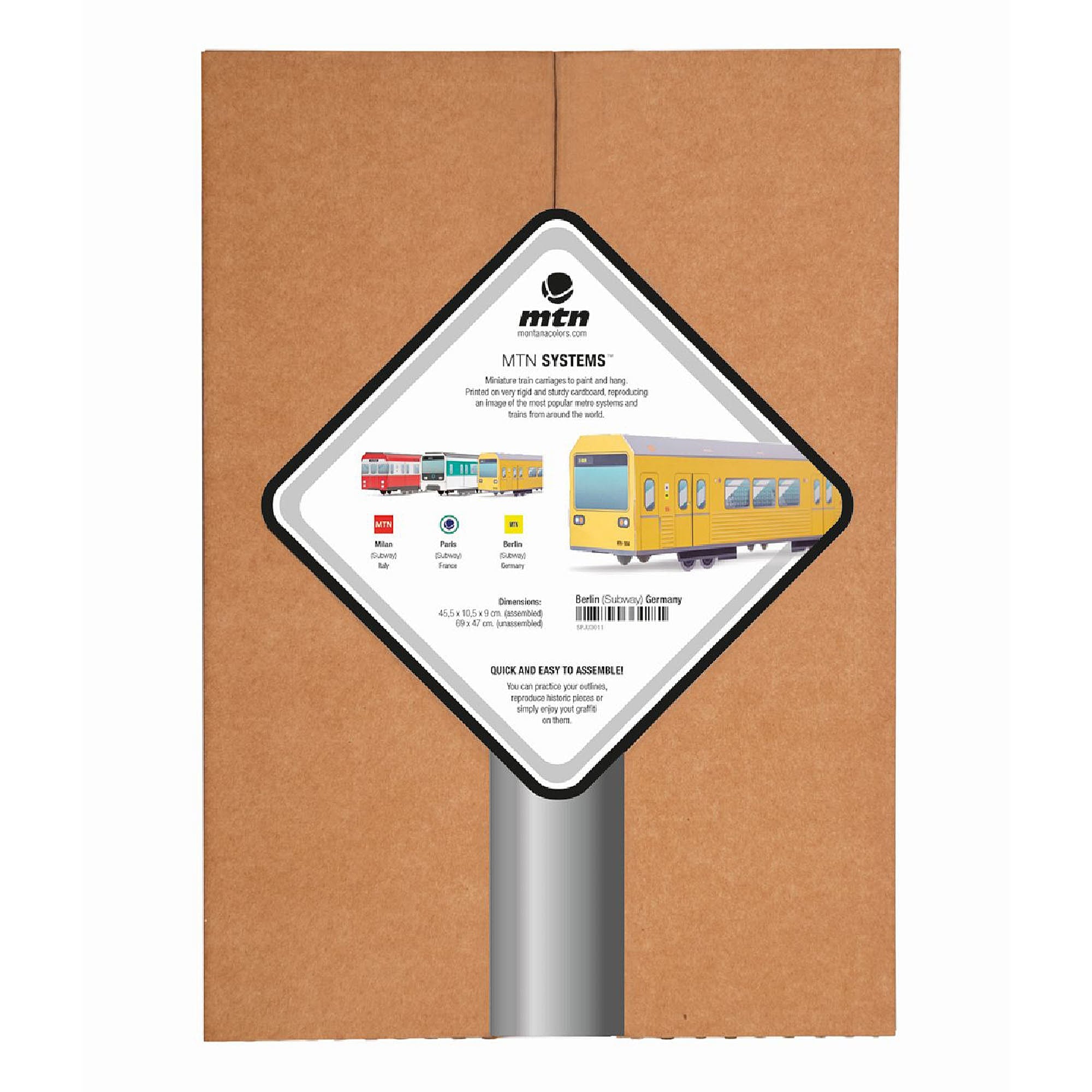 Miniature trains to paint. The motifs are printed on high-quality thick cardboard - ideal for markers and spray paint. Dimensions: 45.5 x 10.5 x 9 cm (assembled) 69 x 47 cm (flat, not assembled)