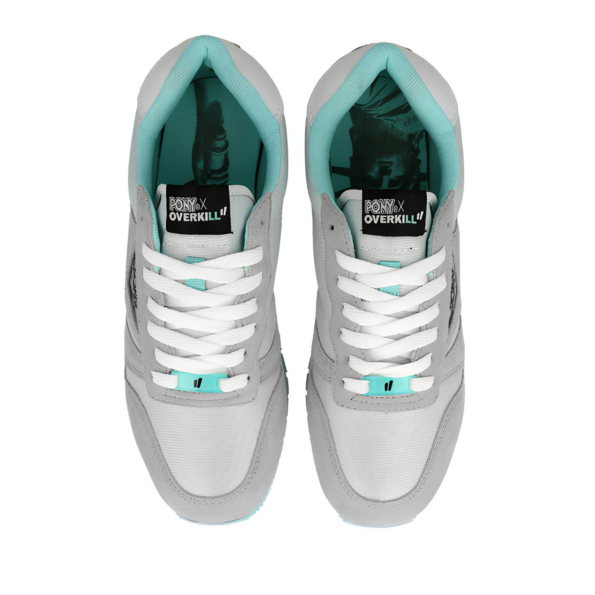 The Overkill x Pony Lady Liberty Runner blends classic retro aesthetics with modern accents, drawing inspiration from New York’s iconic color palette. The mix of grey suede, white mesh, and mint details reflects the cool elegance of the Statue of Liberty, giving the shoe a fresh and urban appeal. A key highlight is the Liberty emblem on the heel, symbolizing the spirit behind this collaboration. The embossed Pony logo on the side and the co-branded tongue label bridge heritage and street culture seamlessly. A lightweight EVA midsole provides responsive cushioning, while the mint-colored rubber outsole ensures reliable traction. Inside, the soft padding and breathable mesh lining guarantee all-day comfort. With its clean silhouette and versatile design, this runner fits effortlessly into any modern wardrobe and is ideal for both city adventures and casual moments.
