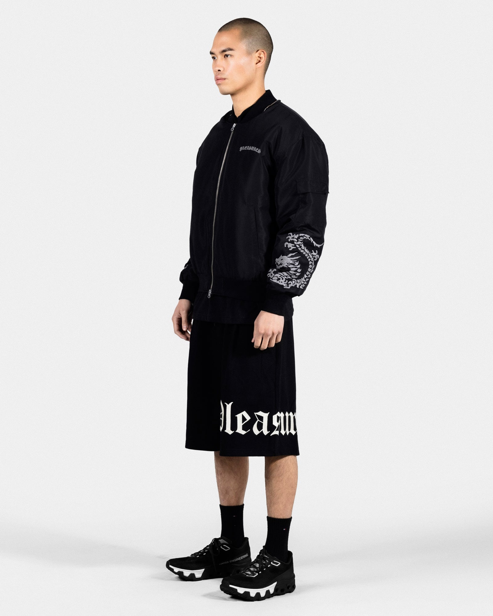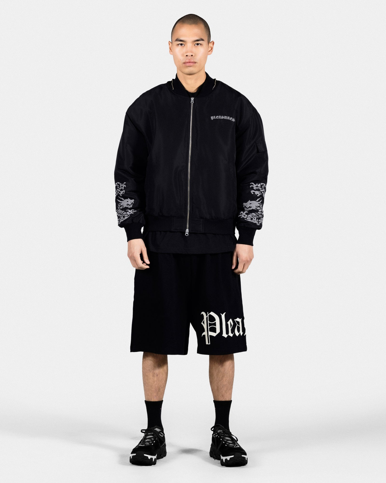 Experience ultimate comfort and style with the OE Wide Shorts. Made from high-quality cotton with an adjustable waistband, these black shorts are perfect for any occasion. With 2 side pockets and 1 back pocket, there's plenty of room for your essentials. The embroidered Pleasures lettering on the left leg adds a touch of sophistication.