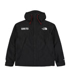The GTX Mountain Jacket by The North Face is a black windbreaker made with GORE-TEX material, providing maximum water-resistance. Perfect for layering, it features a button and zipper closure, several inner and outer pockets with zippers, and adjustable hems. Complete with a hood and drawstrings, this jacket is both functional and stylish. Don't miss the GORE-TEX and The North Face logos on the front. Expertly crafted for any outdoor adventure.