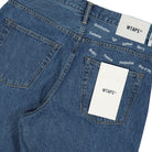 Expertly crafted with WTAPS precision, these blue cotton straight leg trousers are a versatile addition to any wardrobe. Complete with belt loops, 5-pocket details, and a zipper closure, these trousers also feature an embroidered brand logo for a touch of refined style.