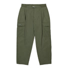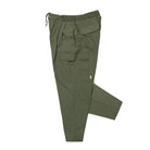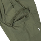 These Lez / 6P / Trousers are designed with a wide fit and made of durable nylon ripstop. Featuring cargo-style pockets on the side, these olive-colored pants offer both style and functionality. The pleated design adds a touch of sophistication to these versatile pants.